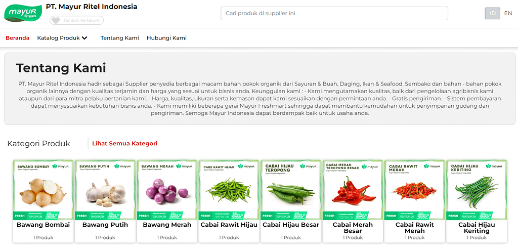 Satu dari daftar 4 supplier sayur di Bekasi paling direkomendasikan adalah Mfsupplier.id yang telah lebih dari dua dekade menjadi pemasok sayuran dan buah-buahan berkualitas top di sekitar wilayah Jabodetabek untuk mencukupi kebutuhan restoran, hotel, cafe, katering, dan jenis usaha lain yang membutuhkan pasokan bahan makanan fresh setiap harinya. Dengan pengalaman lamanya tersebut, Mfsupplier.id terjamin akan profesionalisme, ketepatan waktu pengiriman, serta kualitas produk yang ditawarkan kepada pelanggan.