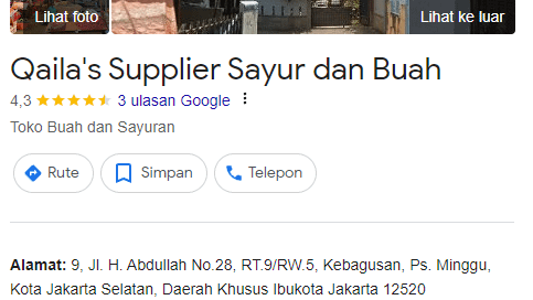 Google Maps dalam hal ini dapat dijadikan platform untuk menelusuri pemasok sayur terpercaya. Berikut adalah top 5 supplier sayur di Jakarta Selatan yang direkomendasikan dari hasil pencarian di peta digital tersebut: